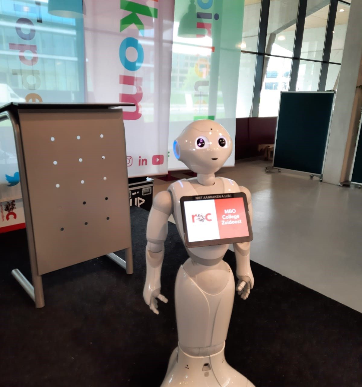 Amsterdam – Mogen we je voorstellen aan Pepper? Robot Pepper kan niet alleen praten, Pepper maakt ook grapjes en heeft soepele dansheupen. Eerstejaars studenten van de opleiding Economie & Zakelijke Dienstverlening van MBO College Zuidoost ontmoeten Pepper tijdens het Innovatiefestival. Het festival staat in het teken van technologische ontwikkelingen in het beroepenveld en in de maatschappij.